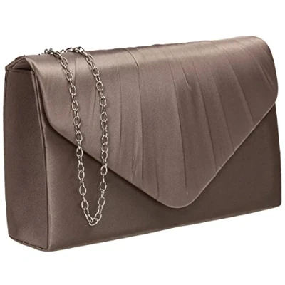 SwankySwans Chantel Womens Satin Party Prom Wedding Evening Clutch Bag Purse Khaki Brown