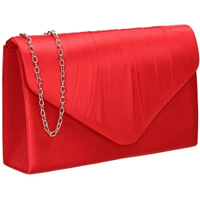 LOOK FAB - Gorgeous Satin Clutch which looks Simple & Elegant and is easy to match with your perfect outfit. INFO - Size: 22 x 14 x 5.5 cm Approx, measured from largest points, MATERIAL: Satin, Silver Chain Strap Included. TYPE: Envelope Shape Clutch Bag. CLOSURE: Magnetic Snap Button STYLE - This Clutch is a perfect elegant accessory for your formal occasions. Match the bag with shoes or fascinators for that polished look.The flap has a magnetic button snap which just clicks shut. The Clutch is perfect size for Smartphone, Cards, Lipsticks and essentials. OCCASIONS - Perfect Bag for Prom or Weddings & ideal to match with Bridesmaids outfits. These clutches will go beautifully with Glam days out such as the Races & Garden Parties. Can hold as a Clutch Bag / Purse or wear on shoulder with the removable chain strap. GUARANTEED - We love these Clutches and we are sure you will too. However if for any reason you don't, just send it back our way for a full refund. Buy with confidence, SWANKYSWANS is a trusted British Brand.