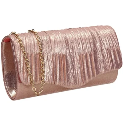 LOOK FAB - Gorgeous Metallic Shiny Clutch which looks Simple & Elegant and is easy to match with your perfect outfit. GOLD hardware & Gold Chain Strap Included. Silver colour has Silver Chain and hardware. INFO - Size: 20 x 10 x 4 cm Approx (7.87 x 3.93 x 1.57 inches), measured from largest points, MATERIAL: Synthetic, TYPE: Flapover Shape Clutch Bag. CLOSURE: Magnetic Snap Button STYLE - This Clutch is a perfect elegant accessory for your formal occasions. Match the bag with shoes or fascinators for that polished look. The flap has a magnetic button snap which just clicks shut. The Clutch is perfect size for Smartphone, Cards, Lipsticks and essentials. OCCASIONS - Perfect Bag for Prom or Weddings & ideal to match with Bridesmaid's outfits. These clutches will go beautifully with Glam days out such as the Races & Garden Parties. Can hold as a Clutch Bag / Purse or wear on the shoulder with the removable chain strap. GUARANTEED - We love these Clutches and we are sure you will too. However if for any reason you don't, just send it back our way for a full refund. Buy with confidence, SWANKYSWANS is a trusted British Brand.