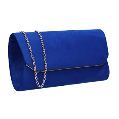 SwankySwans Women's Anny Suedette Flapover Clutch, Sling Bag, Royal Blue, One Size