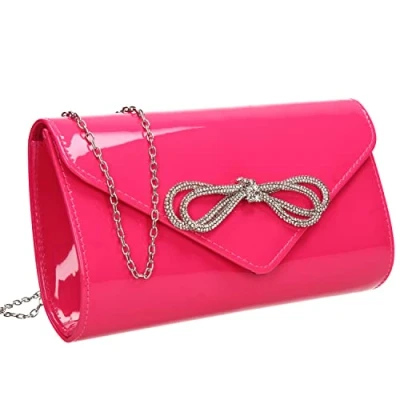 LOOK FAB - Gorgeous Patent Faux Leather Clutch which looks Simple & Elegant and is easy to match with your perfect outfit. Silver hardware & Chain Strap Included. INFO - Size: 25 x 14 x 6 cm Approx, measured from largest points, MATERIAL: Patent Faux Leather, TYPE: Envelope Shape Clutch Bag. CLOSURE: Magnetic Snap Button STYLE - This Clutch is a perfect elegant accessory for your formal occasions. Match the bag with shoes or fascinators for that polished look. The flap has a magnetic button snap which just clicks shut. The Clutch is perfect size for Smartphone, Cards, Lipsticks and essentials. OCCASIONS - Perfect Bag for Prom or Weddings & ideal to match with Bridesmaid's outfits. These clutches will go beautifully with Glam days out such as the Races & Garden Parties. Can hold as a Clutch Bag / Purse or wear on the shoulder with the removable chain strap. GUARANTEED - We love these Clutches and we are sure you will too. However if for any reason you don't, just send it back our way for a full refund. Buy with confidence, SWANKYSWANS is a trusted British Brand.