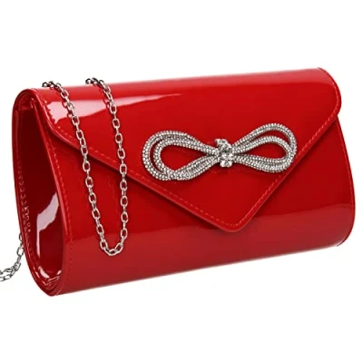 LOOK FAB - Gorgeous Patent Faux Leather Clutch which looks Simple & Elegant and is easy to match with your perfect outfit. Silver hardware & Chain Strap Included. INFO - Size: 25 x 14 x 6 cm Approx, measured from largest points, MATERIAL: Patent Faux Leather, TYPE: Envelope Shape Clutch Bag. CLOSURE: Magnetic Snap Button STYLE - This Clutch is a perfect elegant accessory for your formal occasions. Match the bag with shoes or fascinators for that polished look. The flap has a magnetic button snap which just clicks shut. The Clutch is perfect size for Smartphone, Cards, Lipsticks and essentials. OCCASIONS - Perfect Bag for Prom or Weddings & ideal to match with Bridesmaid's outfits. These clutches will go beautifully with Glam days out such as the Races & Garden Parties. Can hold as a Clutch Bag / Purse or wear on the shoulder with the removable chain strap. GUARANTEED - We love these Clutches and we are sure you will too. However if for any reason you don't, just send it back our way for a full refund. Buy with confidence, SWANKYSWANS is a trusted British Brand.