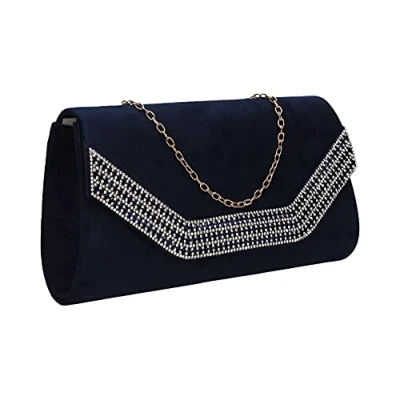 LOOK FAB - Gorgeous Suedette Clutch with Diamante detail which looks Simple & Elegant and is easy to match with your perfect outfit. INFO - Size: 25 x 13.5 x 5 cm (9.8 x 5.3 x 1.9 inches) Approx, measured from largest points, MATERIAL: Faux Suede, Matching Chain Strap Included. TYPE: Flapover Clutch Bag. CLOSURE: Magnetic Snap Button STYLE - This Clutch is a perfect elegant accessory for your formal occasions. Match the bag with shoes or fascinators for that polished look. The flap has a magnetic button snap which just clicks shut. The Clutch is perfect size for Smartphone, Cards, Lipsticks and essentials. OCCASIONS - Perfect Bag for Prom or Weddings & ideal to match with Bridesmaid's outfits. These clutches will go beautifully with Glam days out such as the Races & Garden Parties. Can hold as a Clutch Bag / Purse or wear on the shoulder with the removable chain strap. GUARANTEED - We love these Clutches and we are sure you will too. However if for any reason you don't, just send it back our way for a full refund. Buy with confidence, SWANKYSWANS is a trusted British Brand.