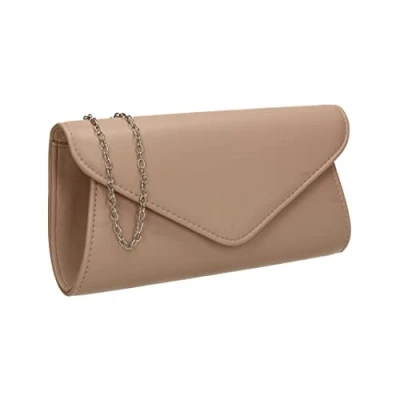 LOOK FAB - Gorgeous Faux Leather Clutch which looks Simple & Elegant and is easy to match with your perfect outfit. INFO - Size: 25 x 12 x 5.5 cm (9.88 x 4.74 x 2.17 inches) Approx, measured from largest points, MATERIAL: Faux Leather, Matching Chain Strap Included. TYPE: Envelope Shape Clutch Bag. CLOSURE: Magnetic Snap Button STYLE - This Clutch is a perfect elegant accessory for your formal occasions. Match the bag with shoes or fascinators for that polished look. The flap has a magnetic button snap which just clicks shut. The Clutch is perfect size for Smartphone, Cards, Lipsticks and essentials. OCCASIONS - Perfect Bag for Prom or Weddings & ideal to match with Bridesmaid's outfits. These clutches will go beautifully with Glam days out such as the Races & Garden Parties. Can hold as a Clutch Bag / Purse or wear on the shoulder with the removable chain strap. GUARANTEED - We love these Clutches and we are sure you will too. However if for any reason you don't, just send it back our way for a full refund. Buy with confidence, SWANKYSWANS is a trusted British Brand.