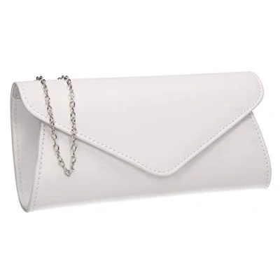 LOOK FAB - Gorgeous Faux Leather Clutch which looks Simple & Elegant and is easy to match with your perfect outfit. INFO - Size: 25 x 12 x 5.5 cm (9.88 x 4.74 x 2.17 inches) Approx, measured from largest points, MATERIAL: Faux Leather, Matching Chain Strap Included. TYPE: Envelope Shape Clutch Bag. CLOSURE: Magnetic Snap Button STYLE - This Clutch is a perfect elegant accessory for your formal occasions. Match the bag with shoes or fascinators for that polished look. The flap has a magnetic button snap which just clicks shut. The Clutch is perfect size for Smartphone, Cards, Lipsticks and essentials. OCCASIONS - Perfect Bag for Prom or Weddings & ideal to match with Bridesmaid's outfits. These clutches will go beautifully with Glam days out such as the Races & Garden Parties. Can hold as a Clutch Bag / Purse or wear on the shoulder with the removable chain strap. GUARANTEED - We love these Clutches and we are sure you will too. However if for any reason you don't, just send it back our way for a full refund. Buy with confidence, SWANKYSWANS is a trusted British Brand.