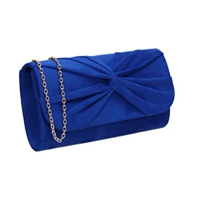 LOOK FAB - Gorgeous flapover Clutch Bag with a Faux Suede finish. 1 Main compartment inside & small card slot pocket, Snap button closure on the flap. SIZE - 25.5 x 12.5 x 6 cm (10 x 4.9 x 2.4 inches), Approx measured from largest points, MATERIAL: Synthetic Suedette finish, matching chain strap included OCCASIONS - Perfect bag for Prom or Weddings & ideal to match with Bridesmaids outfits. These clutches will go beautifully with glam days out such as the Races & Garden Parties. Can hold as a Clutch Bag / Purse or wear on shoulder with the chain strap. STYLE - This Clutch is a perfect elegant accessory for your formal occasions. Match the bag with shoes or fascinators for that polished look.The flap has a magnetic button snap which just clicks shut. The Clutch is perfect size for Smartphone, Cards, Lipsticks and essentials. GUARANTEED - We love these bags and we are sure you will too. However if for any reason you don't, just send it back our way for a full refund. Buy with confidence, SWANKYSWANS is a trusted British Brand.