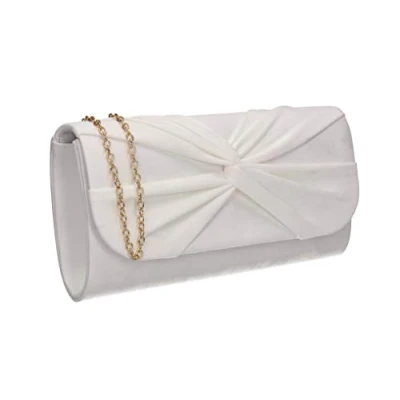 LOOK FAB - Gorgeous flapover Clutch Bag with a Faux Suede finish. 1 Main compartment inside & small card slot pocket, Snap button closure on the flap. SIZE - 25.5 x 12.5 x 6 cm (10 x 4.9 x 2.4 inches), Approx measured from largest points, MATERIAL: Synthetic Suedette finish, matching chain strap included OCCASIONS - Perfect bag for Prom or Weddings & ideal to match with Bridesmaids outfits. These clutches will go beautifully with glam days out such as the Races & Garden Parties. Can hold as a Clutch Bag / Purse or wear on shoulder with the chain strap. STYLE - This Clutch is a perfect elegant accessory for your formal occasions. Match the bag with shoes or fascinators for that polished look.The flap has a magnetic button snap which just clicks shut. The Clutch is perfect size for Smartphone, Cards, Lipsticks and essentials. GUARANTEED - We love these bags and we are sure you will too. However if for any reason you don't, just send it back our way for a full refund. Buy with confidence, SWANKYSWANS is a trusted British Brand.