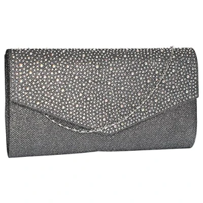SwankySwans Women's Montary Glitter Diamante Envelope Clutch Sling Bag, Grey (Grey), 3x14x27 cm W x H L UK