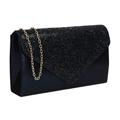 Size: 23 x 13 x 5.5 cm (9.1 x 5.1 x 2.2 inches) Approx measured from largest points Style: Envelope Shape Clutch Bag, Closure: Button Snap, Material: Synthetic Satin & Diamante, Synthetic, Matching Chain Strap Included Occasions: Social, Cocktail, Night Out, Party, Prom. Can hold as a Clutch Bag / Purse or wear on shoulder with the chain strap. Complete your outfit with this clutch for your special occasions or just a night out on Town. Perfect size for Phone, Cards & Lipstick.