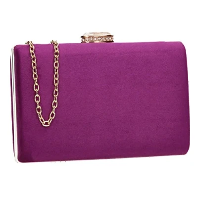 LOOK FAB - Gorgeous Suedette Clutch which looks Simple & Elegant and is easy to match with your perfect outfit. INFO - Size: 17.6 x 11.2 x 5 cm Approx, measured from largest points, MATERIAL: Faux Suede, Matching Chain Strap Included. TYPE: Box Shape Clutch Bag. CLOSURE: Magnetic Snap Button STYLE - This Clutch is a perfect elegant accessory for your formal occasions. Match the bag with shoes or fascinators for that polished look. The flap has a magnetic button snap which just clicks shut. The Clutch is perfect size for Smartphone, Cards, Lipsticks and essentials. OCCASIONS - Perfect Bag for Prom or Weddings & ideal to match with Bridesmaid's outfits. These clutches will go beautifully with Glam days out such as the Races & Garden Parties. Can hold as a Clutch Bag / Purse or wear on the shoulder with the removable chain strap. GUARANTEED - We love these Clutches and we are sure you will too. However if for any reason you don't, just send it back our way for a full refund. Buy with confidence, SWANKYSWANS is a trusted British Brand.