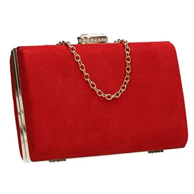 LOOK FAB - Gorgeous Suedette Clutch which looks Simple & Elegant and is easy to match with your perfect outfit. INFO - Size: 17.6 x 11.2 x 5 cm Approx, measured from largest points, MATERIAL: Faux Suede, Matching Chain Strap Included. TYPE: Box Shape Clutch Bag. CLOSURE: Magnetic Snap Button STYLE - This Clutch is a perfect elegant accessory for your formal occasions. Match the bag with shoes or fascinators for that polished look. The flap has a magnetic button snap which just clicks shut. The Clutch is perfect size for Smartphone, Cards, Lipsticks and essentials. OCCASIONS - Perfect Bag for Prom or Weddings & ideal to match with Bridesmaid's outfits. These clutches will go beautifully with Glam days out such as the Races & Garden Parties. Can hold as a Clutch Bag / Purse or wear on the shoulder with the removable chain strap. GUARANTEED - We love these Clutches and we are sure you will too. However if for any reason you don't, just send it back our way for a full refund. Buy with confidence, SWANKYSWANS is a trusted British Brand.