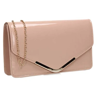SwankySwans Zara Womens Patent Leather Envelope Clutch Bag Pink Nude