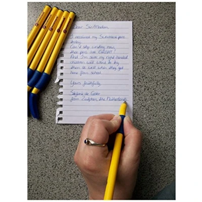 Swanneck Left handed pens yellow barrel school pack of Ten Blue ink