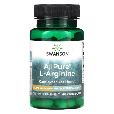 Swanson AjiPure L Arginine 500mg Pharmaceutical Grade Amino Acid for Nitric Oxide & Circulation Support 60 Capsules