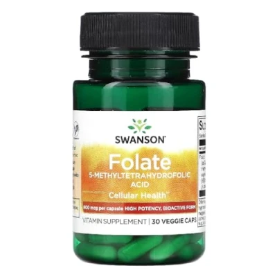 Swanson Quatrefolic Folate 800mcg Active 4th Generation Methylfolate Bioavailable Vitamin B9 Support 30 Capsules