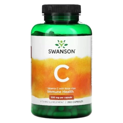 Swanson Vitamin C 500mg with Rose HIPS Immune, Skin & Antioxidant Support 250 Capsules