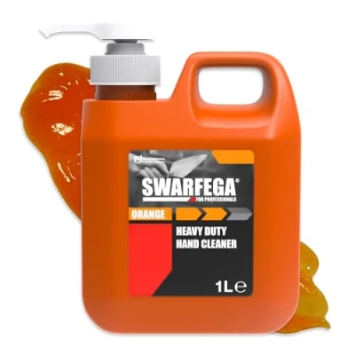 ManoManoGeneral description 1 x Swarfega® Orange Hand Cleaner Pump Bottle 1 litre Heavy-duty orange fragranced hand cleaner with skin moisturiser Non-abrasive cornmeal scrubbing agents for efficient deep-down cleaning Effectively removes ingrained oil, grease, and general grime Solvent-free formula Leaves hands clean and fresh after use