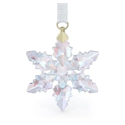 This glistening creation is an exclusive version of Swarovski’s Annual Edition Little Snowflake Ornament 2024 Suspended from a white grosgrain ribbon, the clear design is finely crafted with 133 facets and is given a shimmer effect for extra brilliance Perfect for displaying on your festive tree, in a window or alongside Swarovski’s elegant Christmas Ornament Home Displays or Bell Jars Decoration object Not a toy Not suitable for children under 15