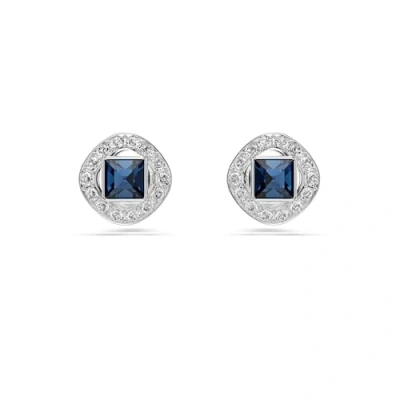 Swarovski Angelic stud earrings, Square cut, Blue, Rhodium plated