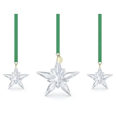 Big Ornament: 7.7 x 1.3 x 7.2 cm; Small Ornaments: 4.9 x 0.8 x 4.3 cm Festive Sparkle: Commemorate the season and add a cheerful decoration to your holiday collection with this radiant star ornament set, crafted with 570 dazzling crystal facets that twinkle from every angle Merry & Bright: Featuring three crystallised stars with champagne gold-tone metal accents and a single 2025-engraved tag, this festive display will illuminate your Christmas tree with endless sparkling brilliance Holiday Charm: Suspended from green grosgrain ribbons, this shimmering Christmas ornament set is a truly magical way to celebrate the most wonderful time of the year, brought to life by Swarovski's unmistakable savoir-faire Designed to Last: Swarovski ornaments maintain their brilliance when simple care practices are observed; avoid contact with abrasive materials and glass cleaners and polish with a lint-free cloth Items Delivered: 1 x Swarovski Annual Edition Ornament Set 2025; 1 x Swarovski keepsake box
