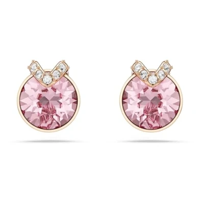 Swarovski Bella Stud Earrings, Round Cut, Pavé, Pink, Rose Gold Tone Plated