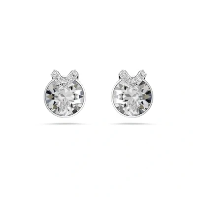Swarovski Bella Stud Earrings, Round Cut, Pavé, White, Rhodium Plated