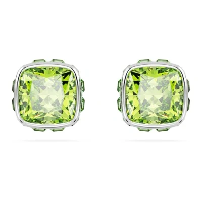 Swarovski Birthstone stud earrings, Square cut, August, Green, Rhodium plated