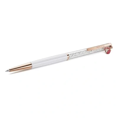 This slender ballpoint pen offers a timeless accessory for endless creativity The slimline design is filled with around 4 clear crystals, which are visible through the long transparent window Along with a lacquered white barrel, the pen includes rose gold-tone plating, as well as a red ladybug charm - cherished across cultures as a talisman of protection and prosperity Refills of black and blue inks are available to purchase in Swarovski stores