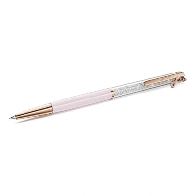 Measurements: 14.5 x 0.9 cm; Ink Colour: Black Shimmering Sophistication: Add a touch of luxury and creative sparkle to your everyday tasks with this exquisite ballpoint pen, featuring a lacquered barrel in a delicate pink hue Crystal Brilliance: This radiant writing instrument is illuminated with approximately 400 glittering clear crystals that are visible through the long transparent window, showcasing Swarovski's meticulous technique Practical & Stylish: Finely crafted with rose gold-tone finished accents, including an infinity charm and Swarovski brand-engraved clip, this pen is a superb gift for yourself or a creative loved one Designed to Last: Swarovski pens maintain their brilliance when simple care practices are observed; avoid contact with water, lotions or perfumes and polish with a lint-free cloth Items Delivered: 1 x Swarovski Crystalline ballpoint pen with pink lacquered finish, clear crystals, rose gold-tone finished accents, infinity charm and black ink; 1 x Swarovski pouch