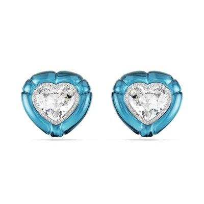 Swarovski Dulcis clip earrings, Heart cut, Pavé, Heart, Blue, Rhodium plated, One Size