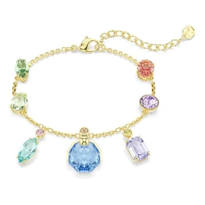 Swarovski Gema bracelet, Mixed cuts, Dangling crystals, Multicolored, Gold tone plated