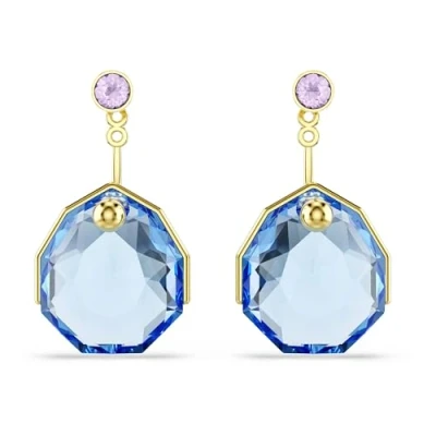 Swarovski Gema earring jackets, Blue, Gold tone plated
