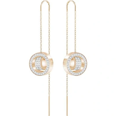 Swarovski Hollow Chain Pierced Earrings, White, Rose gold plating