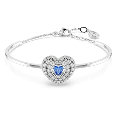 Swarovski Hyperbola bangle, Heart, Blue, Rhodium plated