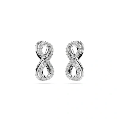 Give a symbol of endless love to someone special with these earrings from Swarovski. Sleek and rhodium-plated, these earrings feature a double infinity motif with white pavé crystals adorning a strand of the infinity symbol. These graceful earrings are finished off with a pushback fastening and would make a stunning gift for someone special.Rhodium platedInfinity motifWhite pavé crystalsStud earrings