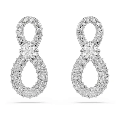 Swarovski Hyperbola Stud Earrings, Round Cut, Pavé, Infinity, White, Rhodium Plated