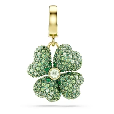 Swarovski Idyllia Charm, Clover, Green, Gold Tone Plated