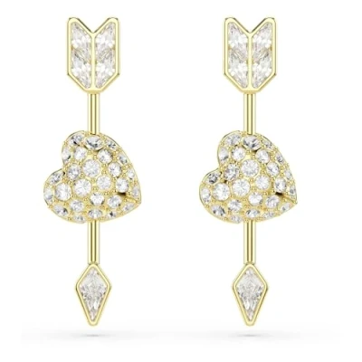 Swarovski Idyllia Drop Earrings, Mixed Cuts, Heart With Arrow, White, Gold Tone Plated