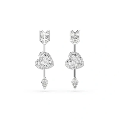 Swarovski Idyllia Drop Earrings, Mixed Cuts, Heart With Arrow, White, Rhodium Plated