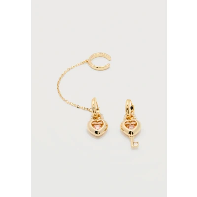 Swarovski Idyllia drop earrings with ear cuff, Mixed cuts, Heart key, Pink, Gold tone plated