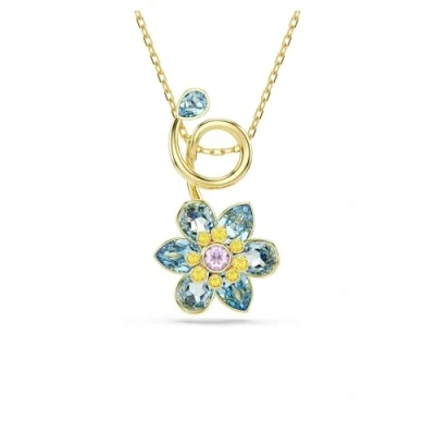 Swarovski Idyllia pendant, Mixed cuts, Flower, Blue, Gold tone plated