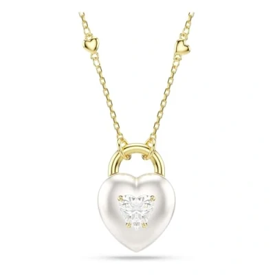 Swarovski Idyllia pendant, Mixed cuts, Heart, White, Gold tone plated