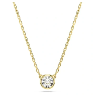 Experience effortless elegance with the Swarovski Imber Pendant Necklace, a piece designed to bring a touch of refined glamour to your everyday style or special occasions. This stunning necklace features a central round-cut crystal, beautifully enclosed in a puffy bezel setting, which captures and reflects light with a subtle yet captivating shimmer. The clear-white crystal showcases Swarovski’s signature sparkle, while the delicate gold-tone plated chain adds a layer of sophistication to your look.