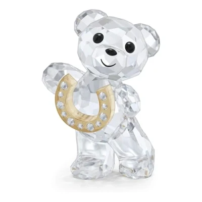 Give your décor a touch of luck with this joyful Kris Bear figurine The collectible is crafted with 542 facets and reveals a horseshoe that is embellished with Swarovski’s Golden Shine effect and a variety of small flatback crystals Place this keepsake on display to inspire optimism and celebrate new beginnings Not a toy Not suitable for children under 15