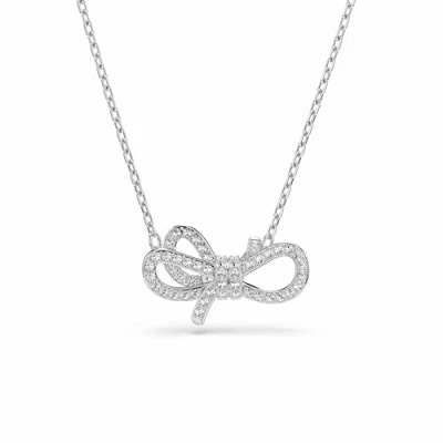 Swarovski Lifelong Pendant, Pavé, Bow, White, Rhodium Plated