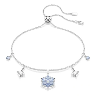 Maximum Length: 24 cm; Motif Size: 1.4 x 1.1 cm; Clasp Type: Sliding Ball Magical Allure: Embrace the glamour of the season with this festive bracelet, showcasing five winter-themed charms embellished with blue and clear mixed-cut crystals, including a shimmering snowflake Enchanted Design: The delicate rhodium-finished chain evokes refined elegance, resulting in a luminous piece of jewellery that effortlessly transitions from day to night celebrations Spellbinding Sparkle: For a truly timeless glow, pair this charm bracelet with other dazzling creations from the Swarovski Magic collection to create your own magical style Designed to Last: Swarovski jewellery maintains its brilliance when simple care practices are observed; remove before contact with water, lotions or perfumes and polish with a lint-free cloth Items Delivered: 1 x Swarovski Magic charm bracelet featuring a snowflake motif with blue and clear mixed-cut crystals in a rhodium-finished setting; 1 x Swarovski bracelet box