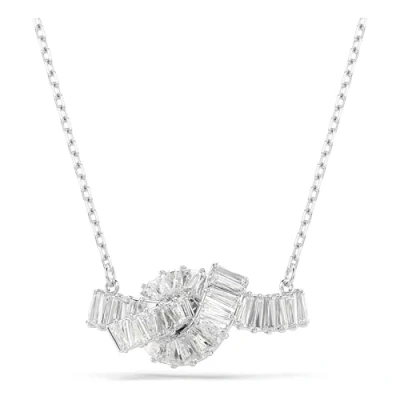 Length: 42 - 49 cm; Motif Size: 1.2 x 2.6 cm; Clasp Type: Lobster Extraordinary Beauty: Enhance your inner light with this exquisite rhodium-finished pendant necklace, featuring a ribbon-inspired twisted knot motif adorned with a glimmering sequence of clear baguette-cut crystals Ultramodern Elegance: This dazzling high-fashion accessory catches the light from every angle, instantly elevating any outfit and stealing the spotlight with its sophisticated sparkle Luxurious Style: Wear this shimmering necklace on its own or pair it with other iconic pieces of jewellery from the Swarovski Matrix collection for maximum brilliance Designed to Last: Swarovski jewellery maintains its brilliance when simple care practices are observed; remove before contact with water, lotions or perfumes and polish with a lint-free cloth Items Delivered: 1 x Swarovski Matrix pendant necklace featuring a twisted knot motif with clear baguette-cut crystals in a rhodium-finished setting; 1 x Swarovski necklace box