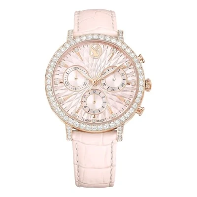 Swarovski Matrix Tennis Chrono Watch, Swiss Made, Leather Strap, Pink, Rose Gold Tone Finish