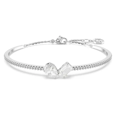 Swarovski Mesmera Moi et Toi Bangle Bracelet, Rectagular Cut and Pear Drop Crystals with White Pavé Stones in a Rhodium Plated Setting, from the Collection
