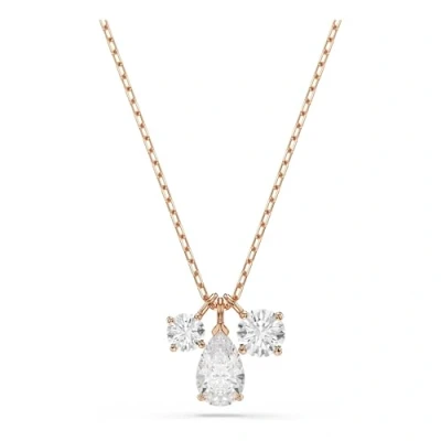 Length: 40 - 45 cm; Motif Size: 1.1 x 0.5 cm; Clasp Type: Lobster Make it Mesmerising: Turn heads with this sparkling pendant necklace, featuring a luminous pear-cut crystal at the centre complemented by two smaller round-cut crystals on either side, all of which appear to dance when they catch the light Hypnotic Detail: The enchanting piece is further accentuated by delicate facets and a rose gold-tone finished chain, adding a subtle shimmer with every movement Glitz & Glamour: Designed to showcase the mesmerising beauty of Swarovski crystals, this stunning necklace from the Mesmera family will make a splendid addition to your jewellery collection Designed to Last: Swarovski jewellery maintains its brilliance when simple care practices are observed; remove before contact with water, lotions or perfumes and polish with a lint-free cloth Items Delivered: 1 x Swarovski Mesmera pendant necklace with clear mixed-cut crystals in a rose gold-tone finished setting; 1 x Swarovski necklace box